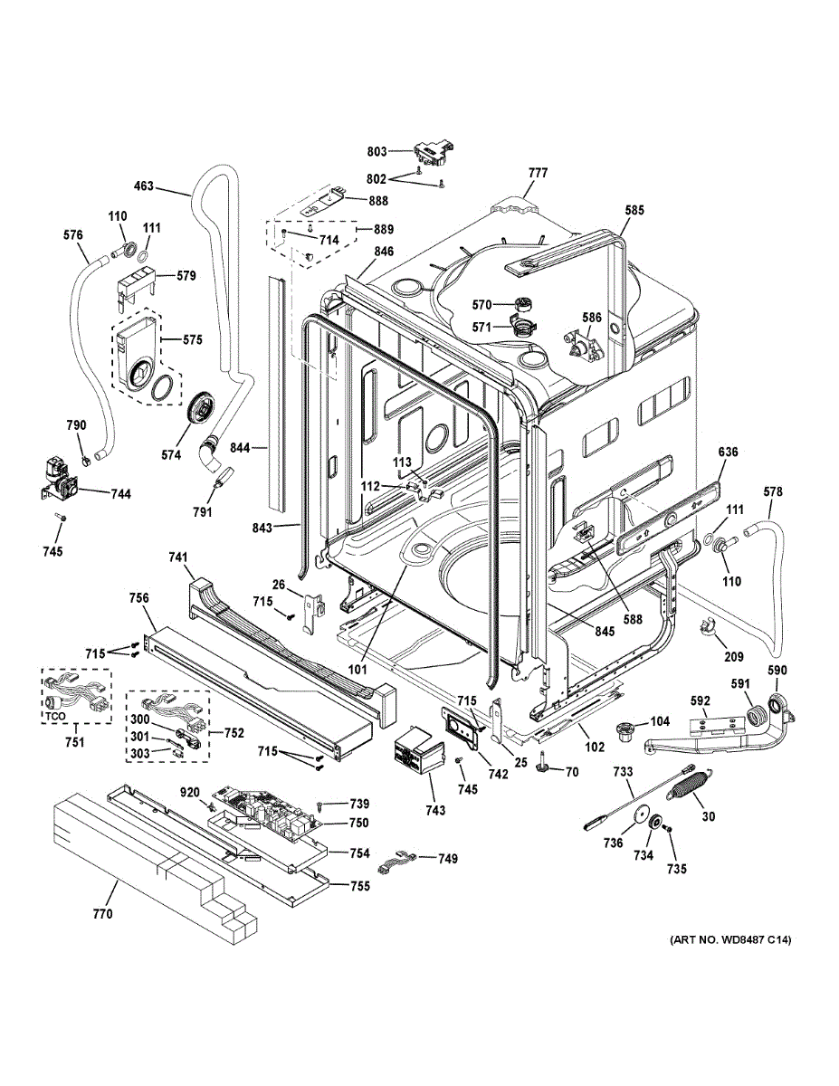 Dishwasher not heating or drying dishes? The AC wiring harness assembly connects your dishwasher's electrical system and includes the thermal cutoff switch.