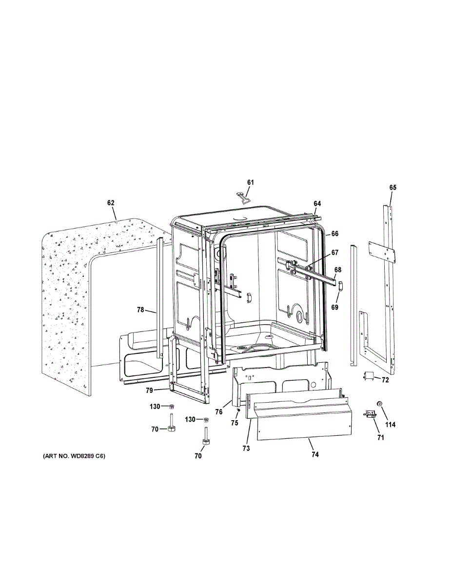 Insulation pad that wraps around the dishwasher tub to reduce noise and retain heat. Replace if torn, deteriorated, or missing for proper operation.