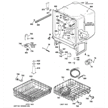 The Upper Rack is an OEM replacement part for GE dishwashers. It provides movable shelf space along the top of the dishwasher interior for washing plates, bowls, and other dishes. The shelves feature an adjustable design that accommodates various sizes and configurations of dishware. Causes of failure include normal wear and tear, accidental impacts that damage shelves or cleaning chemicals stripping away protective coatings. Symptoms of a bad upper rack can include: