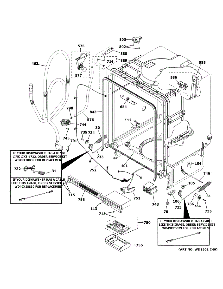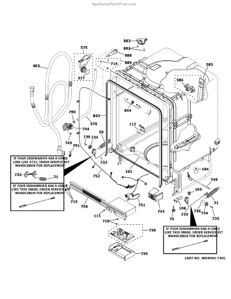 The Door Cable and Spring Kit is an OEM part for GE dishwashers. This kit includes the necessary cables and springs that connect to the dishwasher door, allowing it to open and close smoothly and securely. The components work together to provide the right tension and balance, preventing the door from falling open too quickly or not staying closed properly.