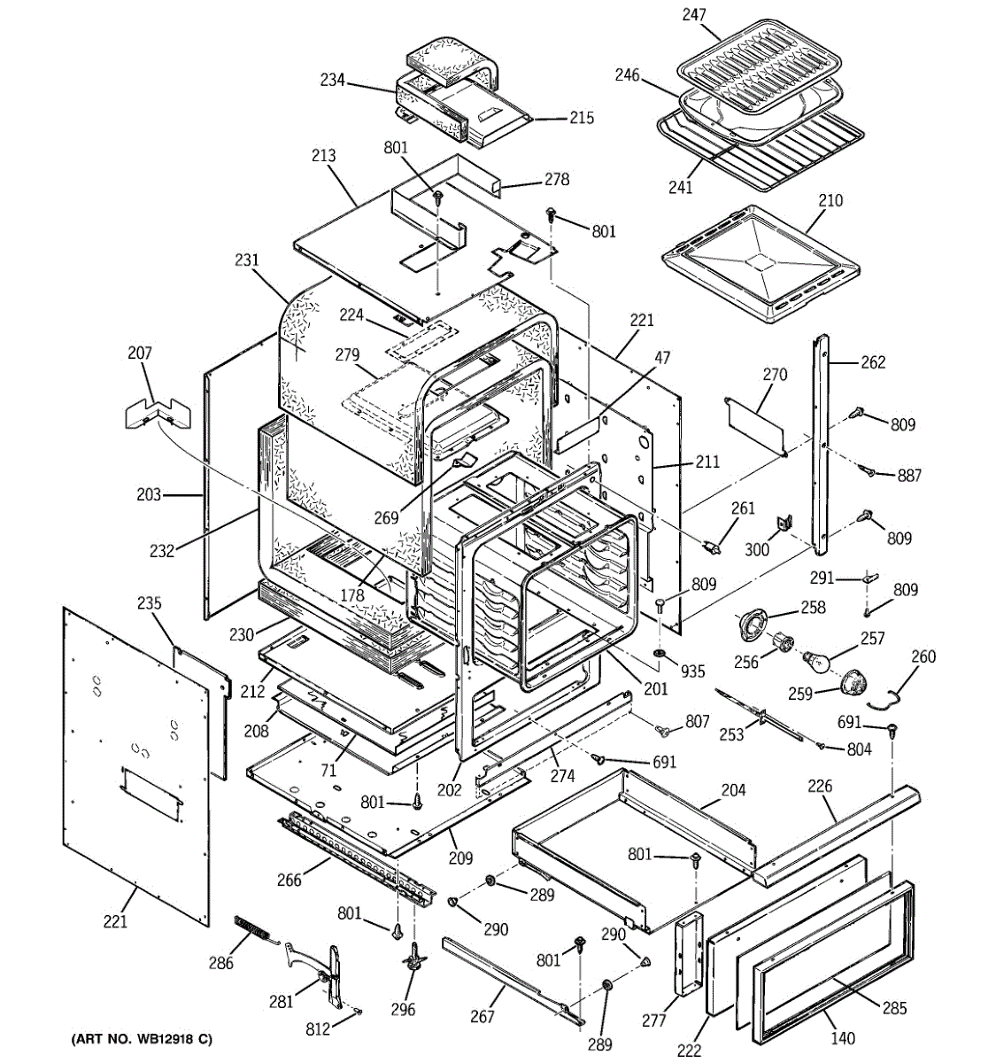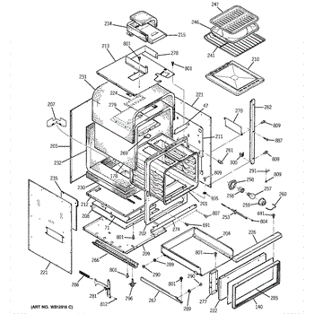 Oven range body assembly forms the main cabinet structure. Replace if cracked, damaged, or corroded. Essential structural component for wall ovens and ranges.