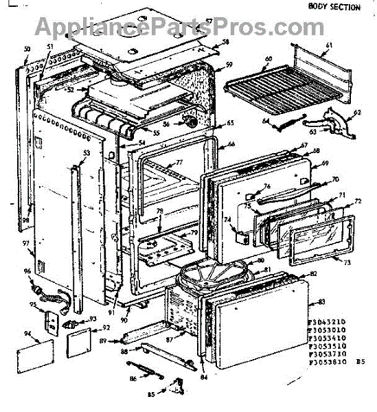Parts for Kenmore 103.3043210 (1033043210, 103 3043210): Body Section Parts