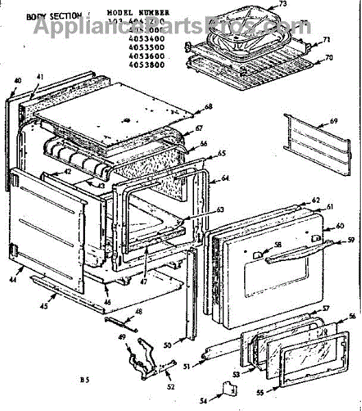 Parts for Kenmore 103.4043200 (1034043200, 103 4043200): Body Section Parts