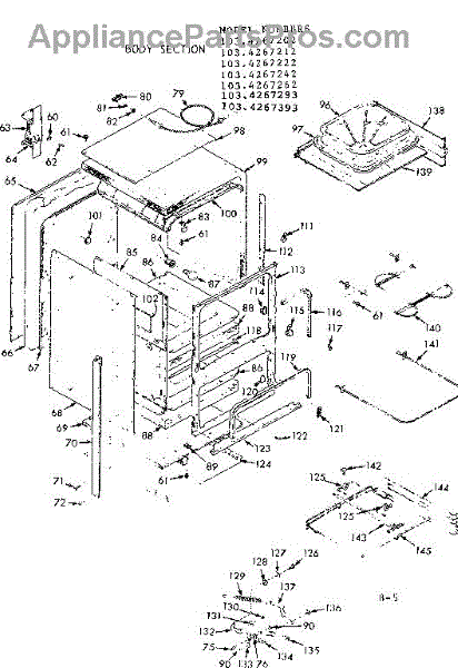 Parts for Kenmore 103.4267293 (1034267293, 103 4267293): Body Section Parts