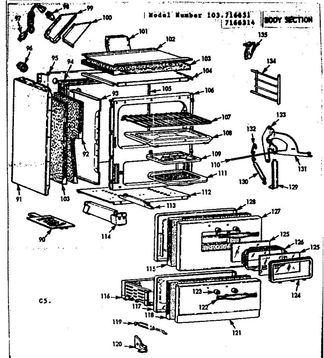 Parts for Kenmore 103.7166314 (1037166314, 103 7166314): Body Section Parts
