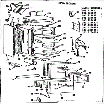 Parts for Kenmore 103.725636 (103725636, 103 725636): Body Section Parts