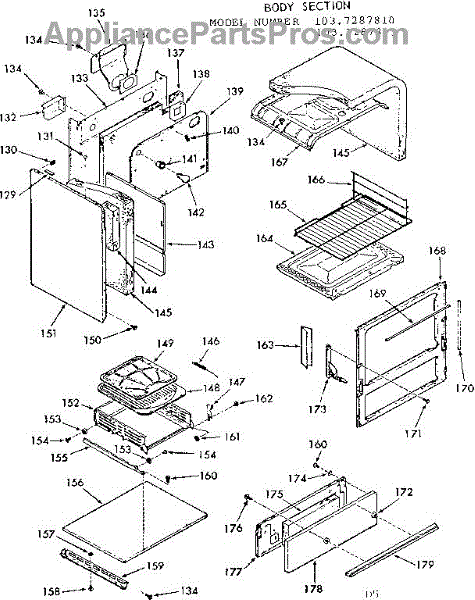 Parts for Kenmore 103.7287811 (1037287811, 103 7287811): Body Section Parts