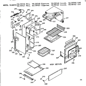 Parts for Kenmore 103.7297440 (1037297440, 103 7297440): Body Section Parts