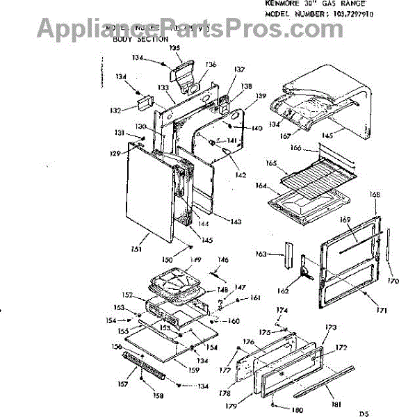 Parts for Kenmore 103.7297910 (1037297910, 103 7297910): Body Section Parts