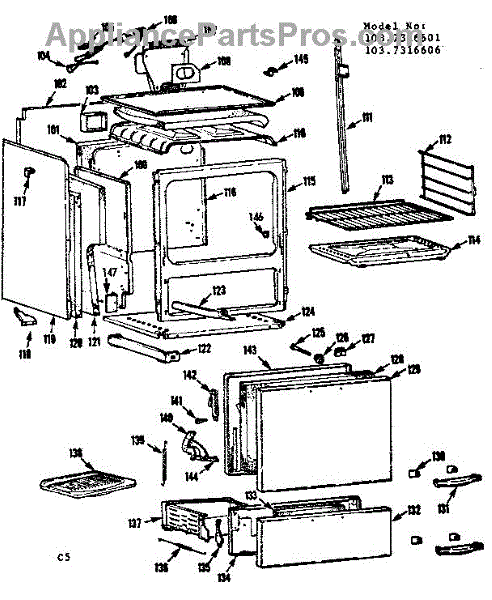 Parts for Kenmore 103.7316601 (1037316601, 103 7316601): Body Section Parts