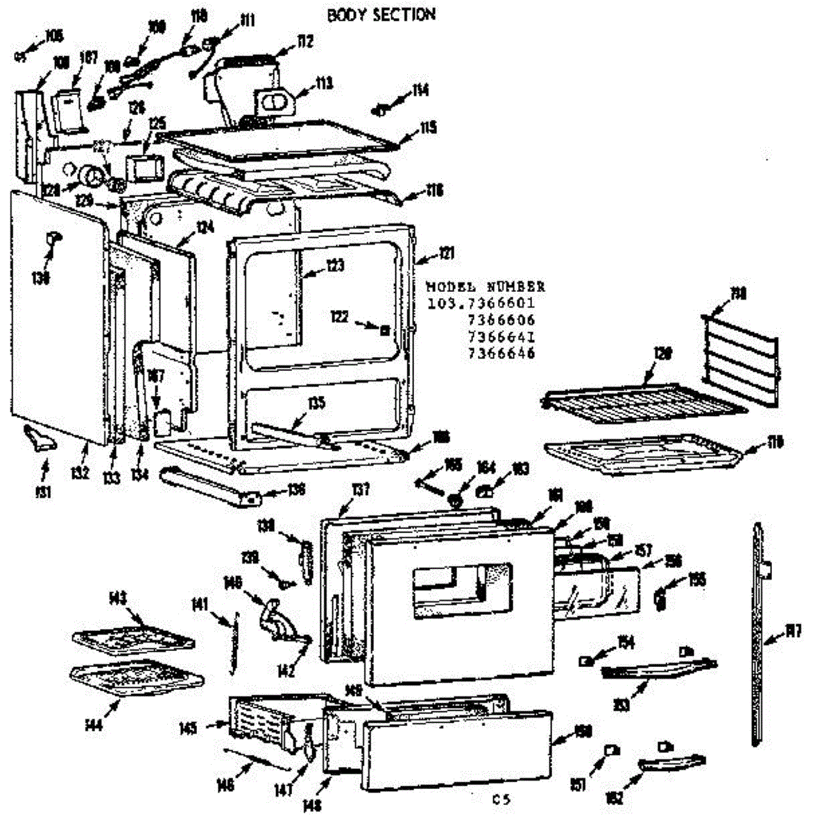 Parts for Kenmore 103.7366606 (1037366606, 103 7366606): Body Section Parts