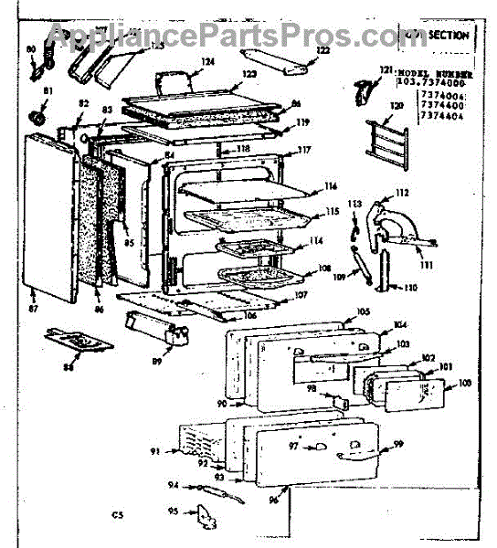 Parts for Kenmore 103.7374404 (1037374404, 103 7374404): Body Section Parts