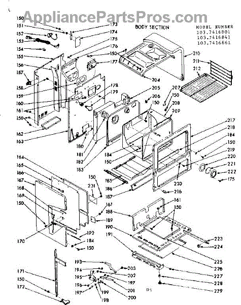 Parts for Kenmore 103.7416841 (1037416841, 103 7416841): Body Section Parts