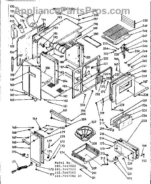 Parts for Kenmore 103.7447002 (1037447002, 103 7447002): Body Section Parts