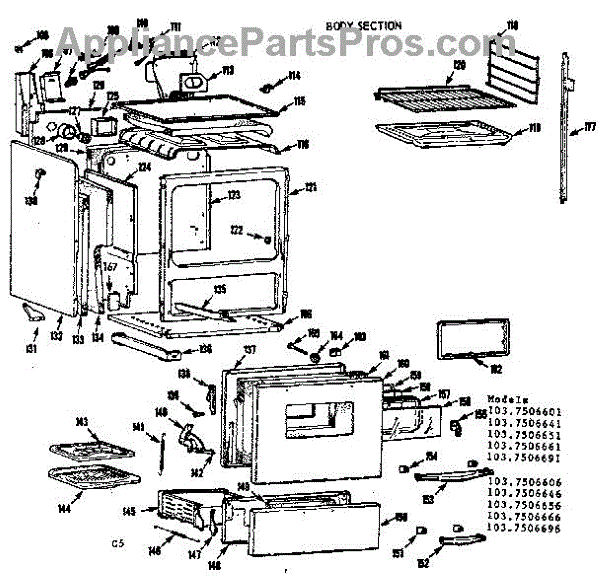 Parts for Kenmore 103.7506666 (1037506666, 103 7506666): Body Section Parts