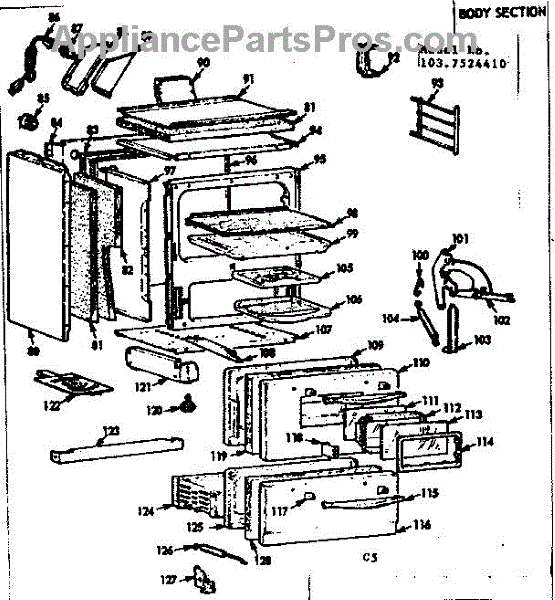 Parts for Kenmore 103.7524410 (1037524410, 103 7524410): Body Section Parts