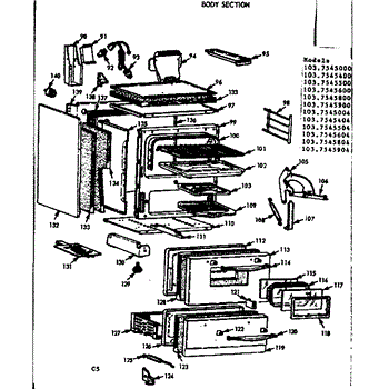 Parts for Kenmore 103.7545804 (1037545804, 103 7545804): Body Section Parts