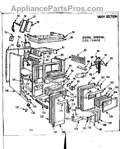 Parts for Kenmore 103.756626 (103756626, 103 756626): Body Section Parts