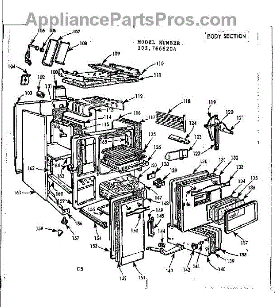 Parts for Kenmore 103.7666204 (1037666204, 103 7666204): Body Section Parts