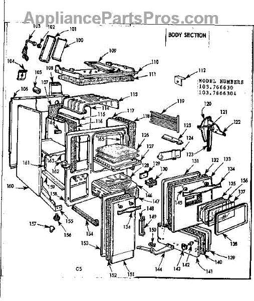 Parts for Kenmore 103.766630 (103766630, 103 766630): Body Section Parts