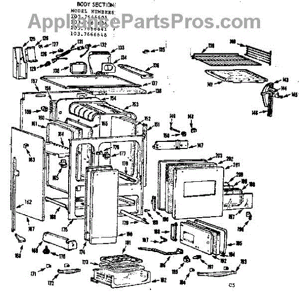 Parts for Kenmore 103.7666601 (1037666601, 103 7666601): Body Section Parts