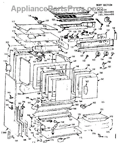 Parts for Kenmore 103.7844000 (1037844000, 103 7844000): Body Section Parts