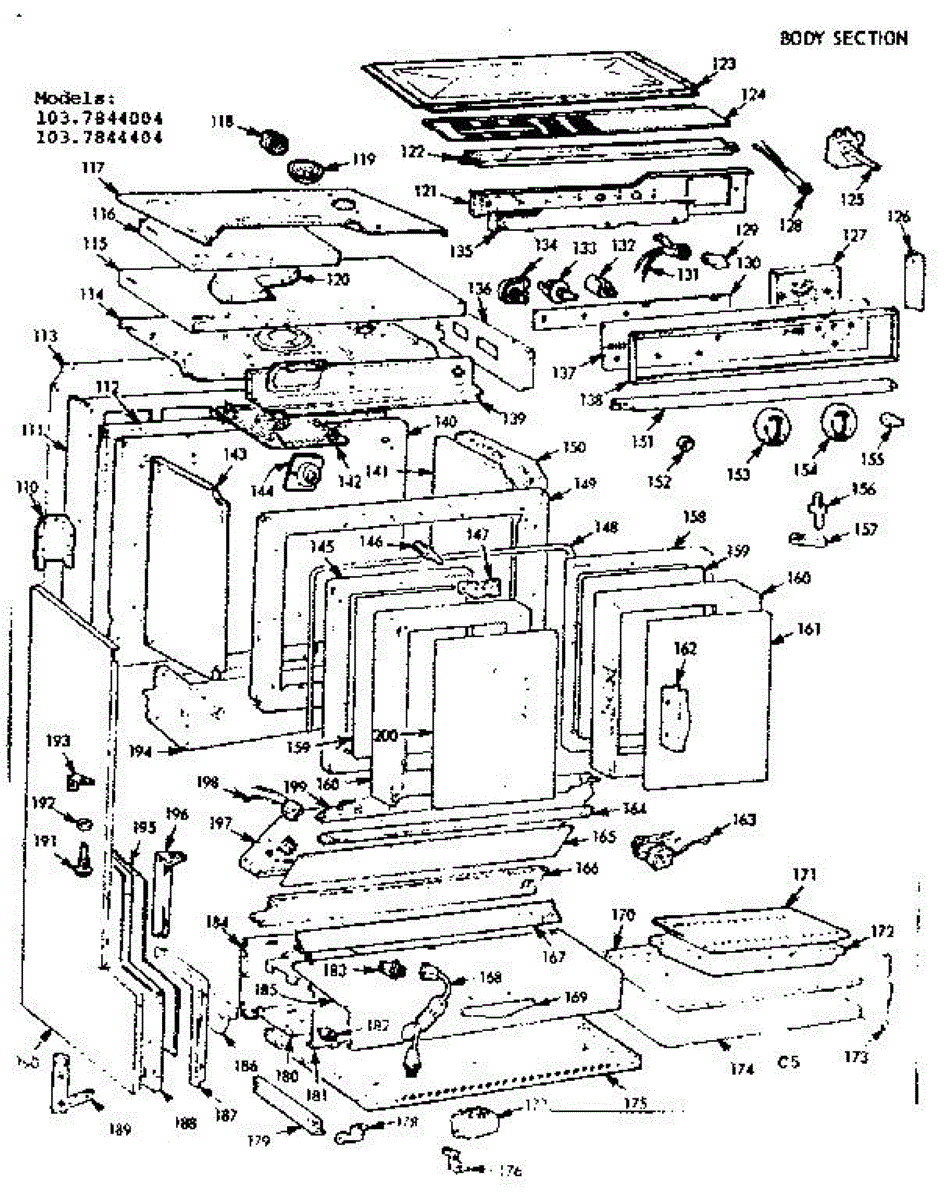 Parts for Kenmore 103.7844404 (1037844404, 103 7844404): Body Section Parts