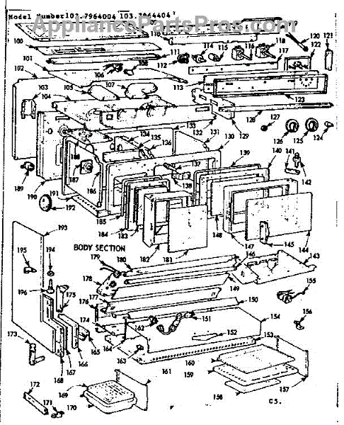 Parts for Kenmore 103.7964004 (1037964004, 103 7964004): Body Section Parts
