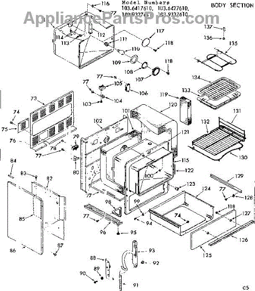 Parts for Kenmore 103.9337610 (1039337610, 103 9337610): Body Section Parts