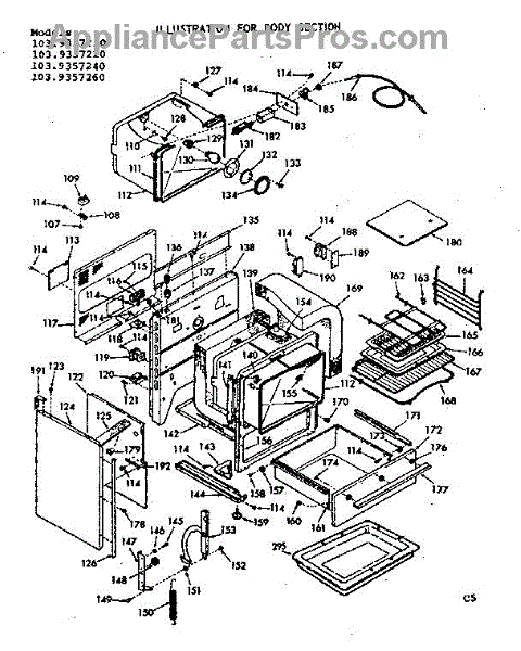 Parts for Kenmore 103.9357210 (1039357210, 103 9357210): Body Section Parts