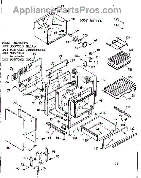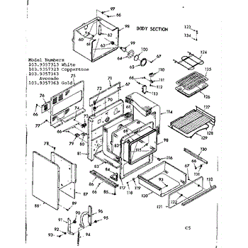 Parts for Kenmore 103.9357343 (1039357343, 103 9357343): Body Section Parts