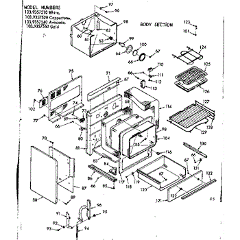 Parts for Kenmore 103.9357520 (1039357520, 103 9357520): Body Section Parts