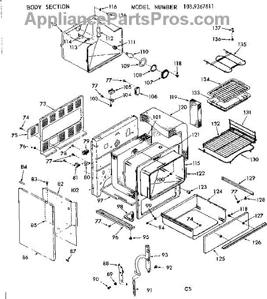 Parts for Kenmore 103.9367611 (1039367611, 103 9367611): Body Section Parts
