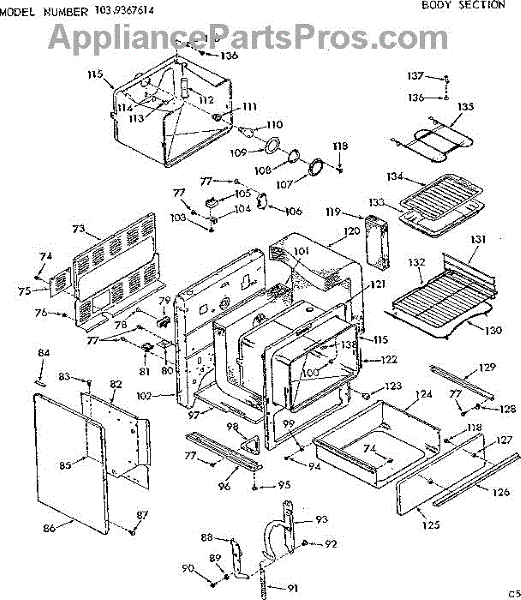 Parts for Kenmore 103.9367614 (1039367614, 103 9367614): Body Section Parts