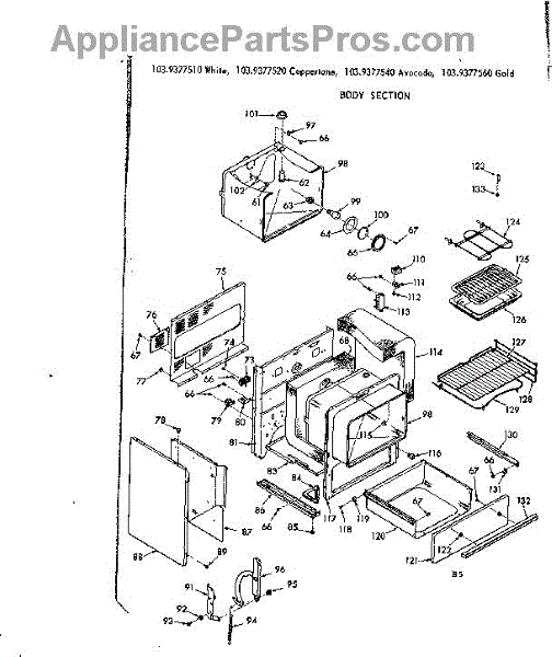 Parts for Kenmore 103.9377540 (1039377540, 103 9377540): Body Section Parts