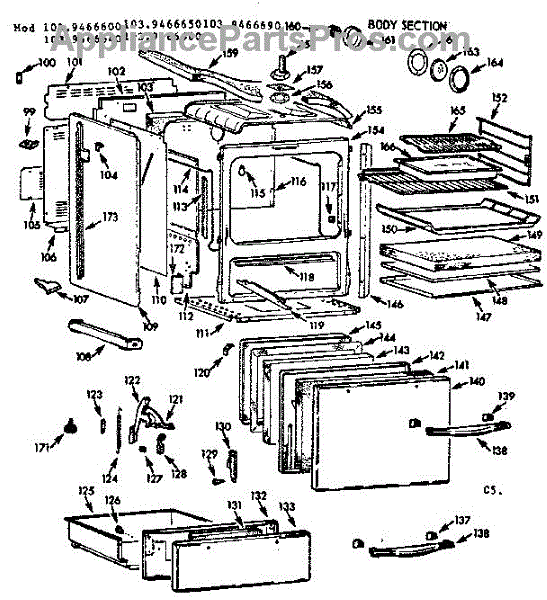 Parts for Kenmore 103.9466640 (1039466640, 103 9466640): Body Section Parts