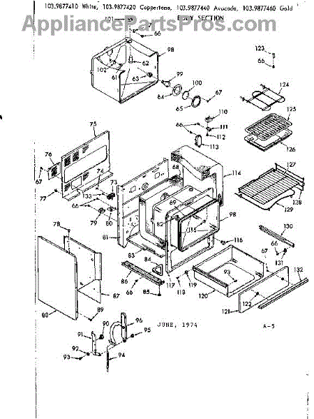 Parts for Kenmore 103.9877420 (1039877420, 103 9877420): Body Section Parts