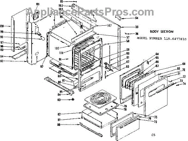 Parts for Kenmore 119.6477810 (1196477810, 119 6477810): Body Section Parts
