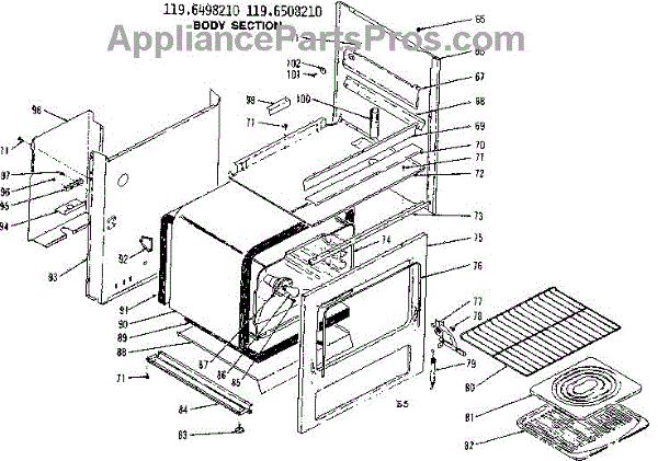 Parts for Kenmore 119.6498210 (1196498210, 119 6498210): Body Section Parts