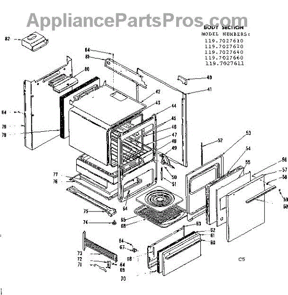 Parts for Kenmore 119.7027660 (1197027660, 119 7027660): Body Section Parts