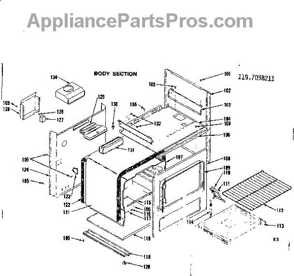 Parts for Kenmore 119.7038211 (1197038211, 119 7038211): Body Section Parts