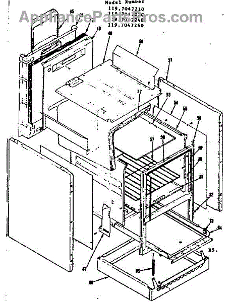 Parts for Kenmore 119.7047210 (1197047210, 119 7047210): Body Section Parts
