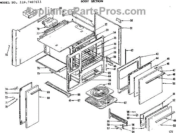 Parts for Kenmore 119.7407611 (1197407611, 119 7407611): Body Section Parts
