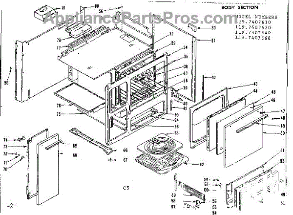 Parts for Kenmore 119.7407620 (1197407620, 119 7407620): Body Section Parts