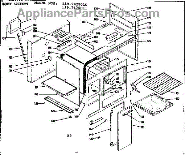 Parts for Kenmore 119.7428011 (1197428011, 119 7428011): Body Section Parts