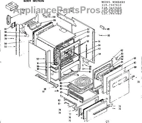 Parts for Kenmore 119.7447660 (1197447660, 119 7447660): Body Section Parts