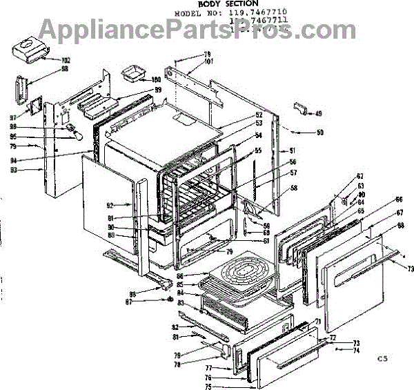 Parts for Kenmore 119.7467712 (1197467712, 119 7467712): Body Section Parts