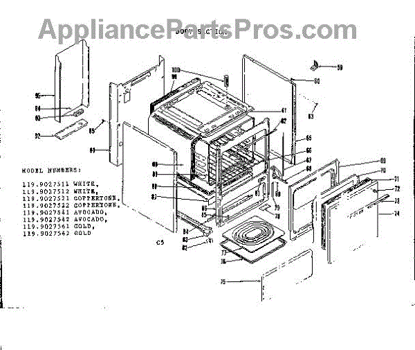 Parts for Kenmore 119.9027512 (1199027512, 119 9027512): Body Section Parts