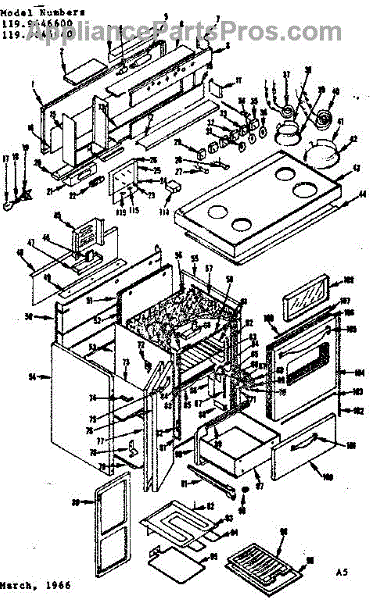Parts for Kenmore 119.9646640 (1199646640, 119 9646640): Body Section Parts