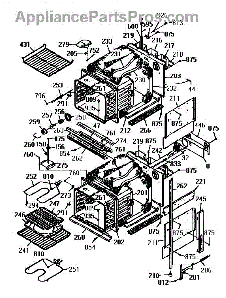 Rear chassis panel for ovens. Supports internal components and protects wiring. Replace if your panel is cracked, corroded, damaged, or missing.